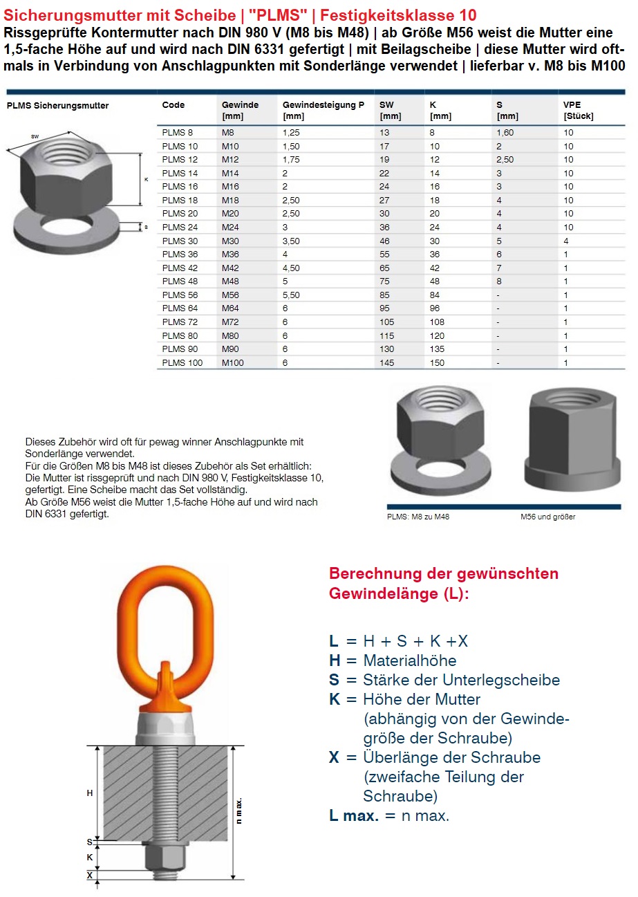 Die Größen M56 bis M100 sind auf Anfrage möglich!!!