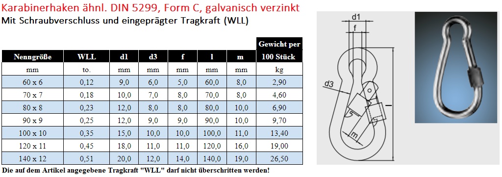 Karabinerhaken ähnl. DIN 5299 Form C | Schraubverschluss
