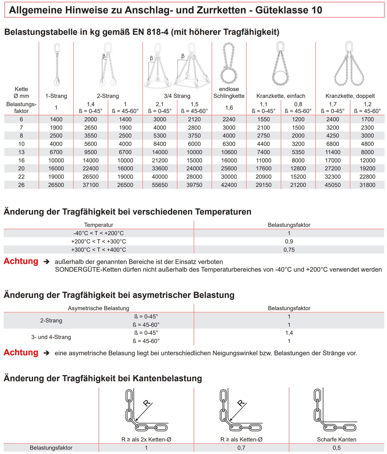 h) Hebezeugketten