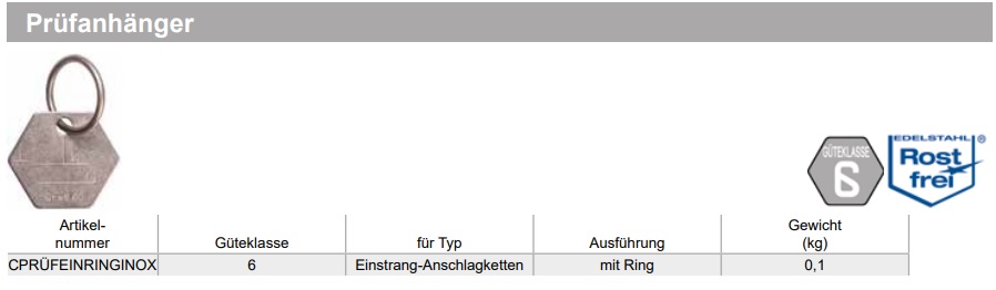 Prüfplakette für Edelstahl-Anschlagketten | einstrang | GK6