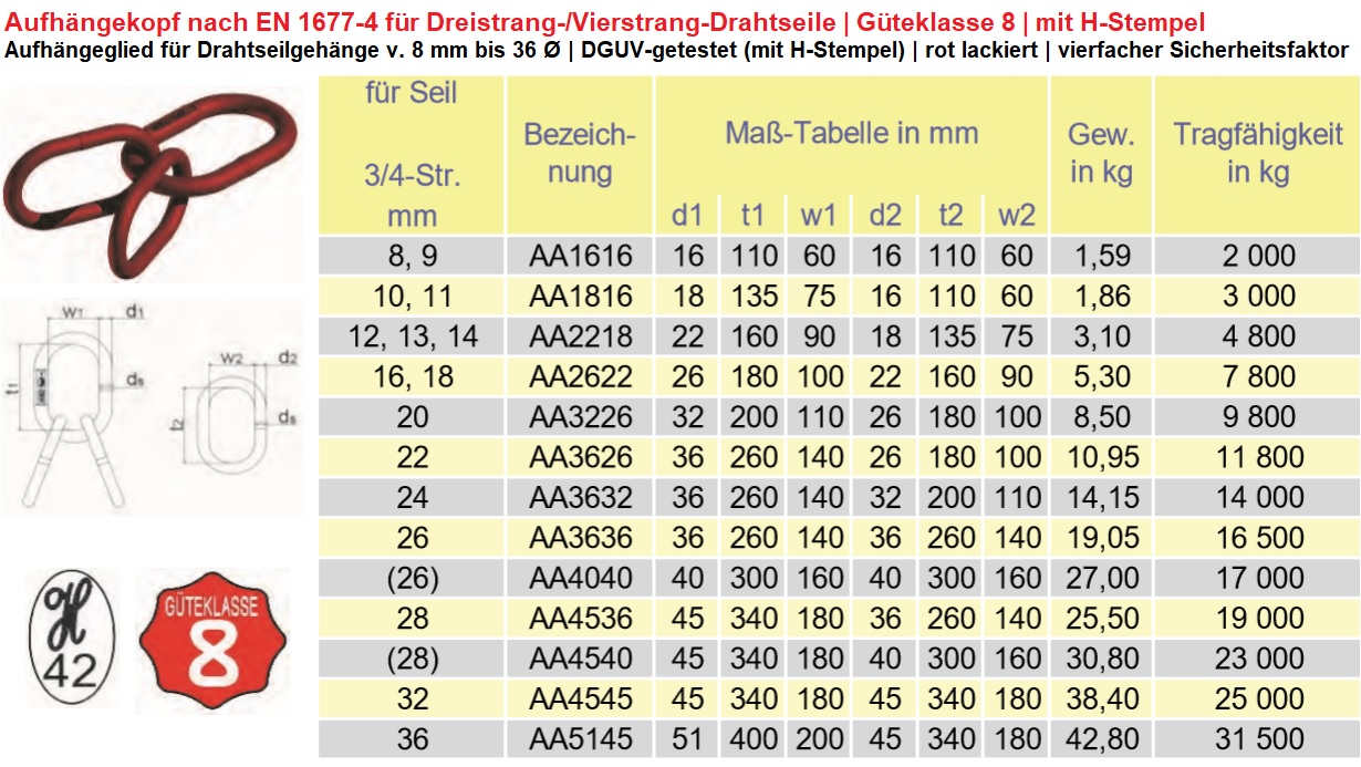 Aufhängekopf für Dreistrang-/Vierstrang Drahtseile | GK 8