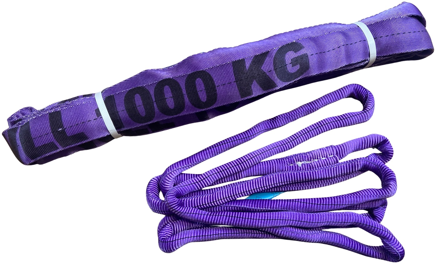 Rundschlingen im Vergleich: oben Standard-Rundschlinge, unten Kompakt-Rundschlinge