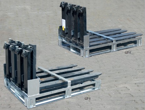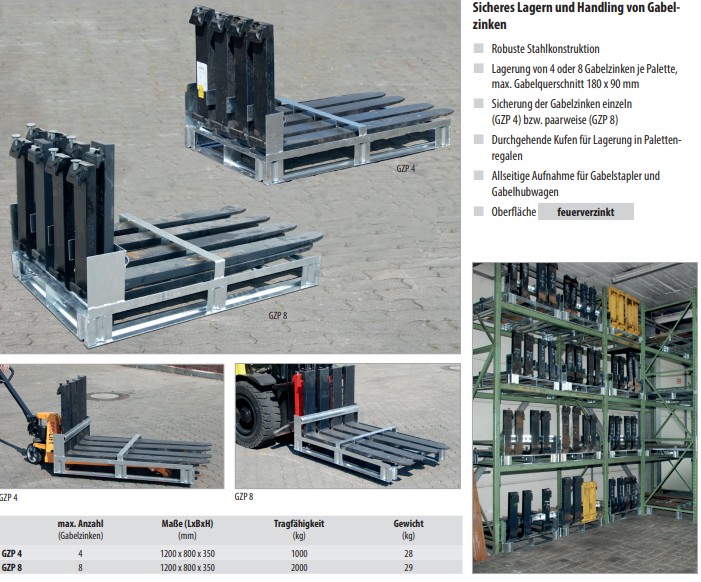 Startseite » XII. Hebezeuge » k) Stapler-Anbaugeräte | Arbeitsbühnen | Behälter » Gabelzinkenpaletten GZP