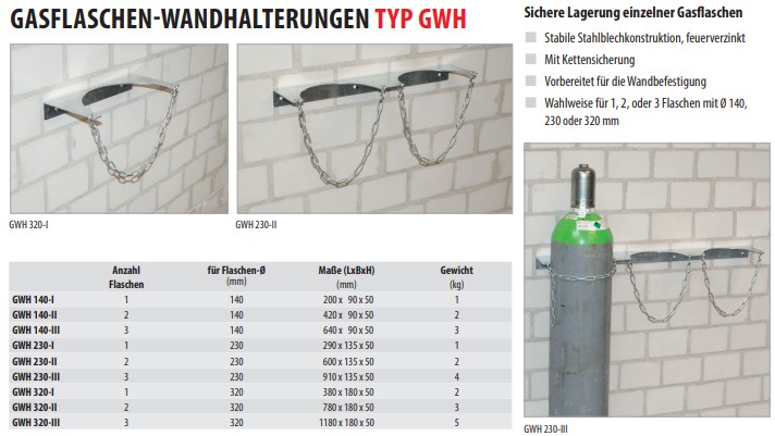 GASFLASCHEN-WANDHALTERUNGEN GWH