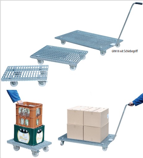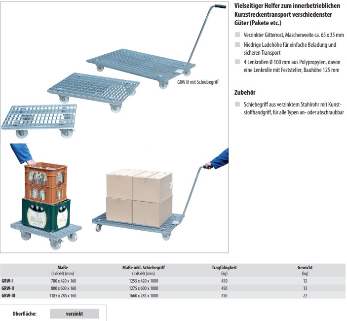 Startseite » XII. Hebezeuge » k) Stapler-Anbaugeräte | Arbeitsbühnen | Behälter » GITTERROST-ROLLWAGEN GRW