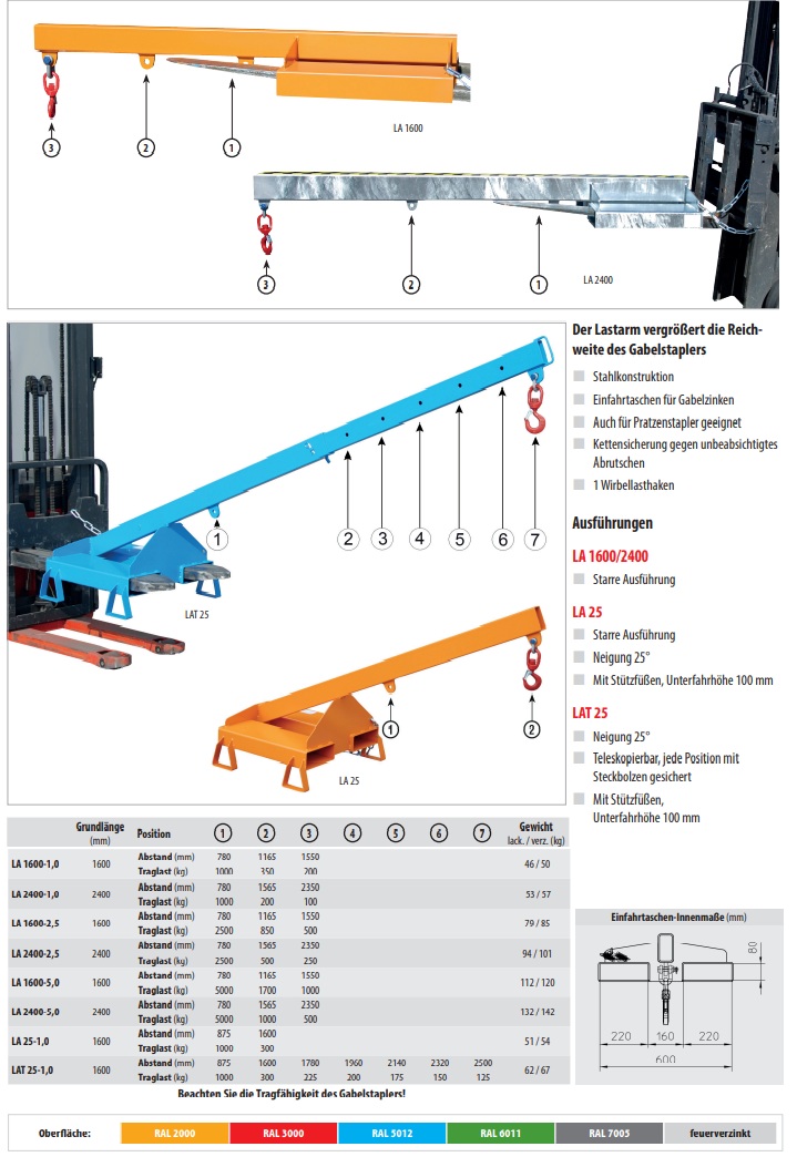 Startseite » XII. Hebezeuge » k) Stapler-Anbaugeräte | Arbeitsbühnen | Behälter » Lastarm Typ LAT 25