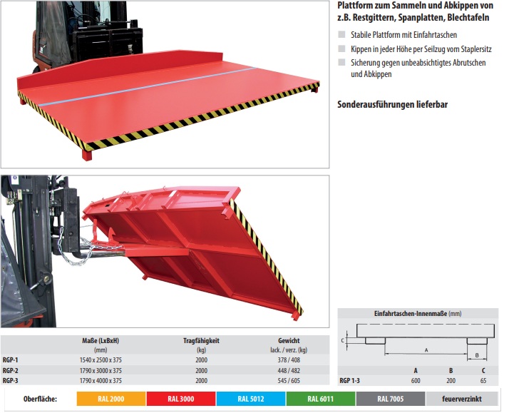 Startseite » XII. Hebezeuge » k) Stapler-Anbaugeräte | Arbeitsbühnen | Behälter » Restgitter-Palette RGP