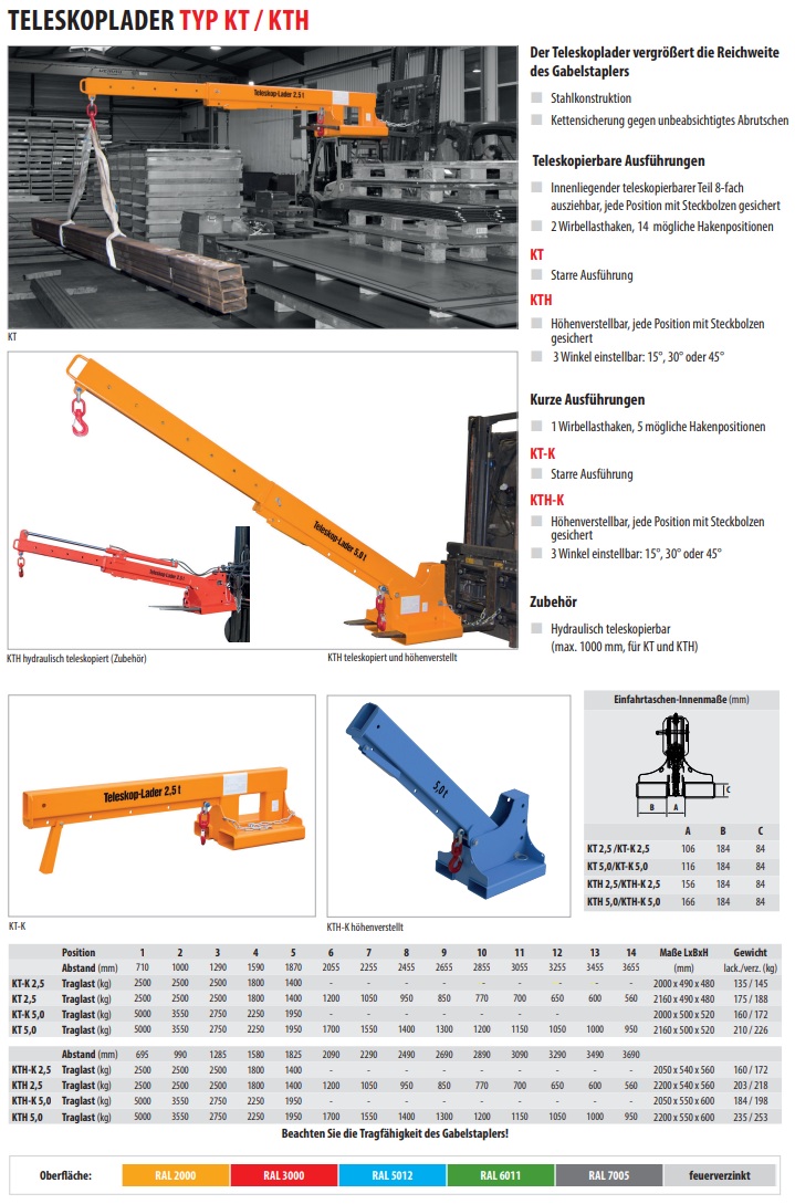 Startseite » XII. Hebezeuge » k) Stapler-Anbaugeräte | Arbeitsbühnen | Behälter » Teleskoplader Typ KT