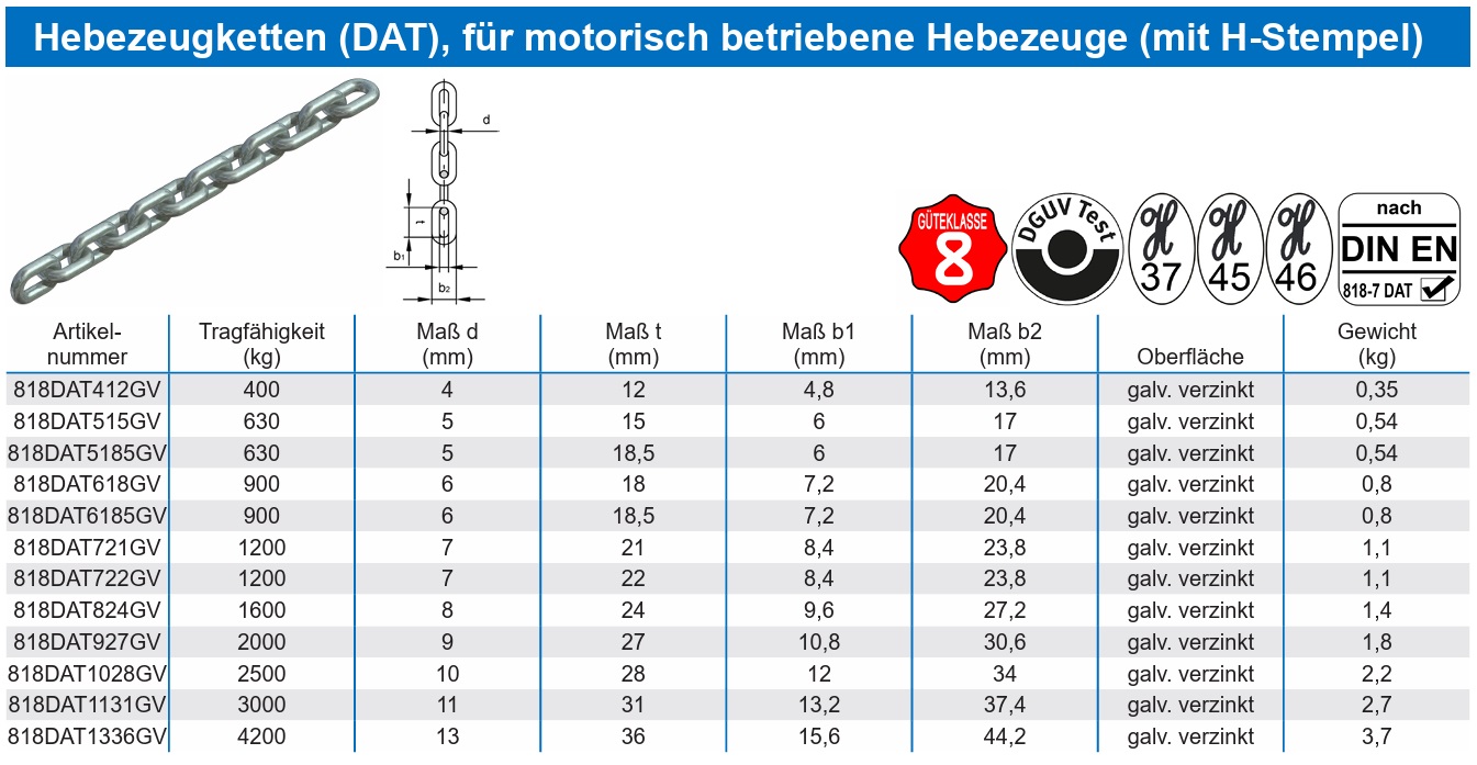 Hebezeugkette | GK8 | EN 818-7-DAT | für elektrische Kettenzüge