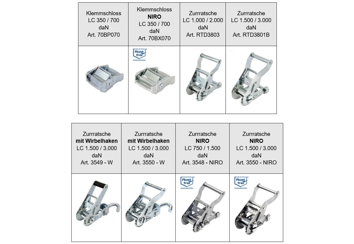 - zweiteilige Spanngurte mit Haken