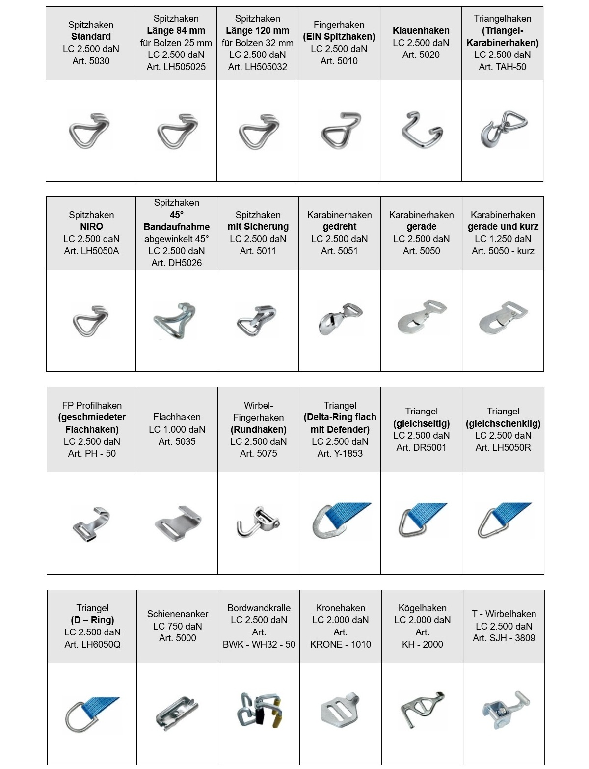 Wir liefern Komplett-Gurte, einzelne Ratschen, Zurrhaken, Festenden und Losenden!