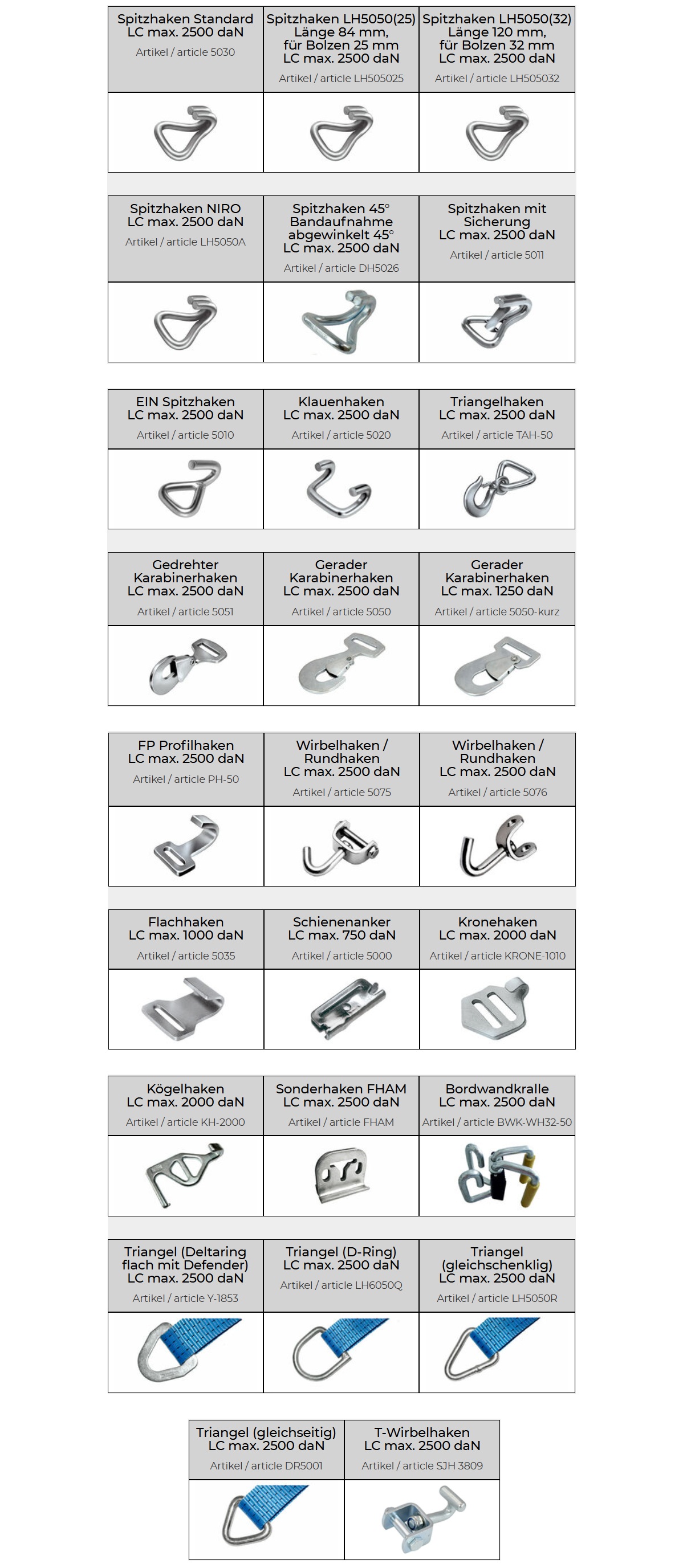 Weitere mögliche Haken & Endbeschläge: