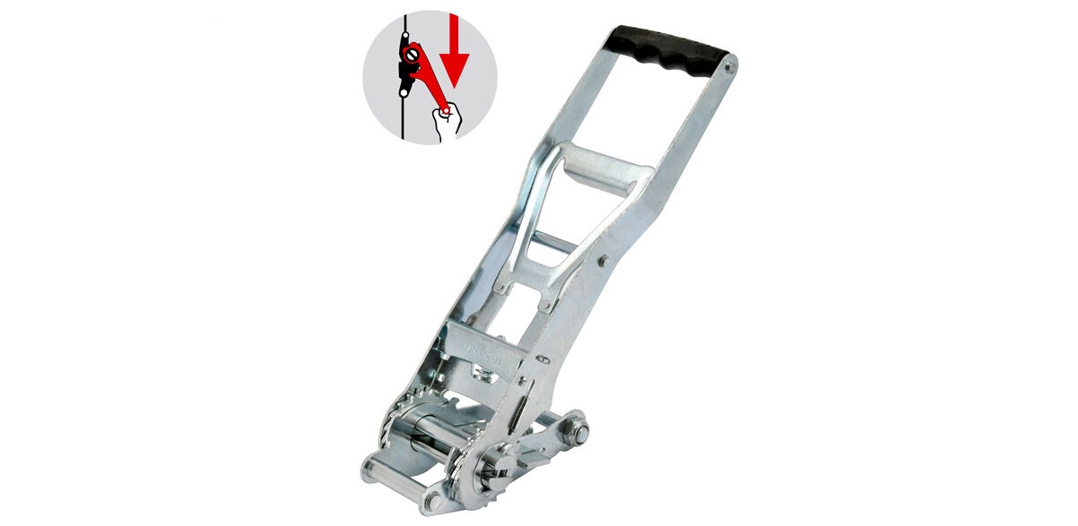 Zurrgurt mit Langhebel-ERGO-Zugratsche mit Doppelzahnkranz und Standard-Spitzhaken